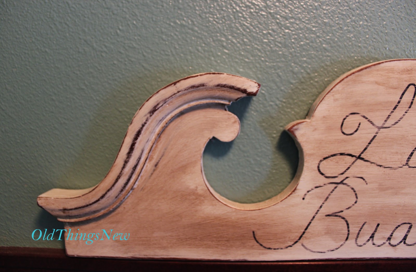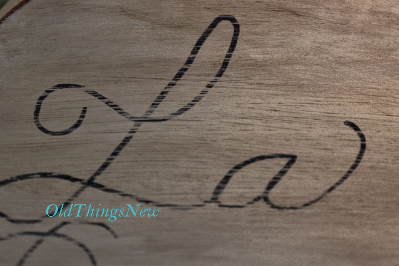 I have an appreciation for words and letters myself and enjoy the use of beautiful script in home decor . . . furniture, pillows, bedding, towels . . . it’s enough to make me want to start writing poetry on my walls right now! Before I get to the walls, though, I decided to start small. There are several methods for transferring letters onto walls or furniture and one of the best sources I’ve found is at The Graphics Fairy. Head over there to check out her 12 Easy Image Transfer Methods.