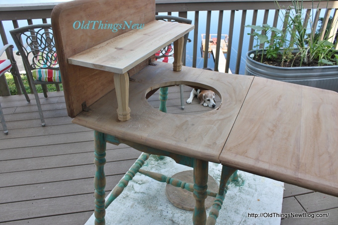 This is simply amazing. I’ve seen many redone and repurposed projects, but this one is a whole new level of transformation! I would of never thought to add the shelf and reverse the drop leaf. Thank-you for your inspiration.