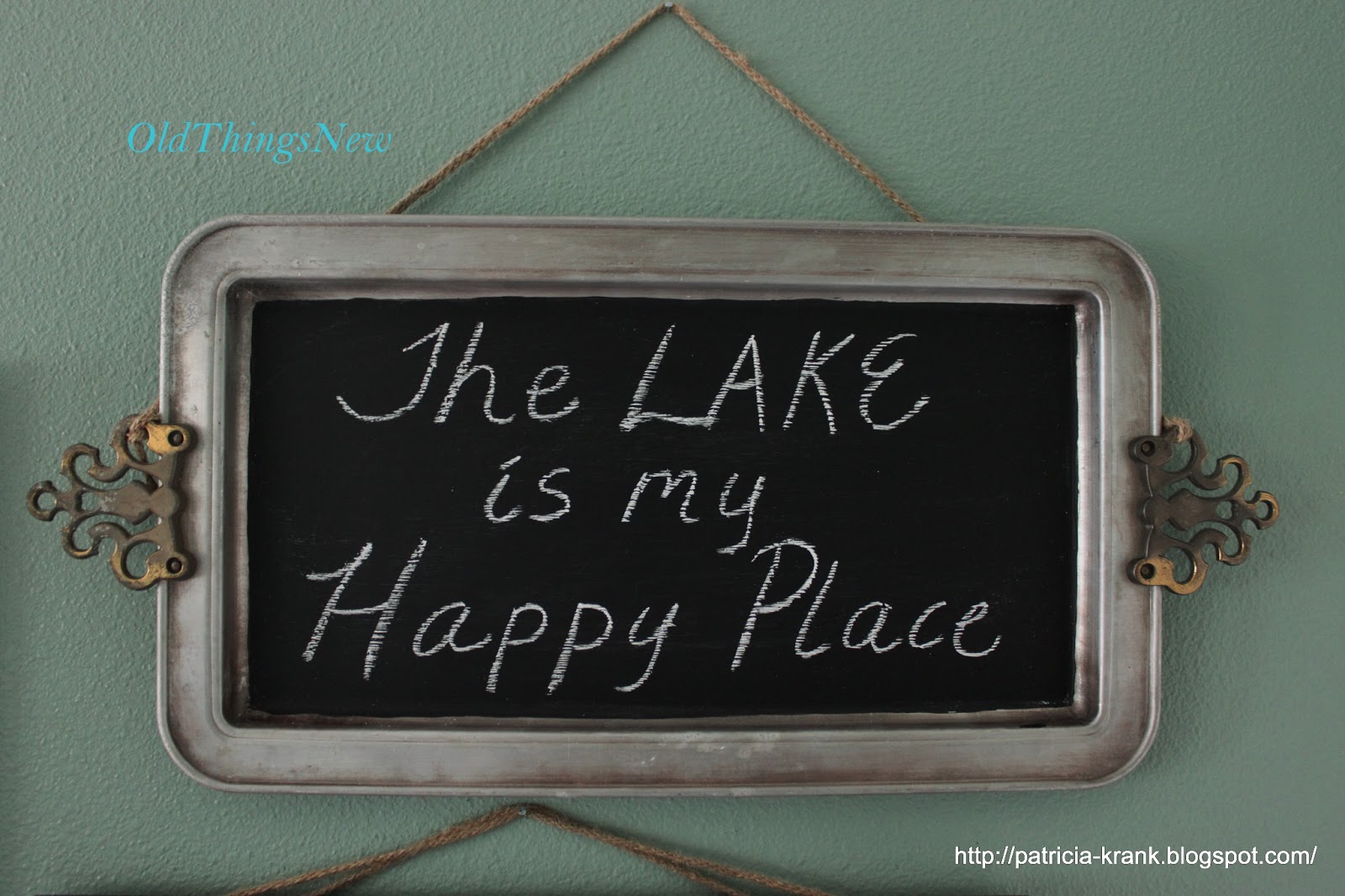 I wanted a chalkboard for writing messages. This old tray was $2.99 at one of my local thrift stores! Gorgeous piece, perfect price! With the addition of a little chalkboard paint it was ready to to carry the sentiment I’m feeling right now, living on a lake in the summertime.