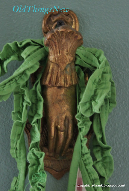 I added this antique brass hook to hang miscellaneous items, such as my purse, a sweater or, right now, my apron.